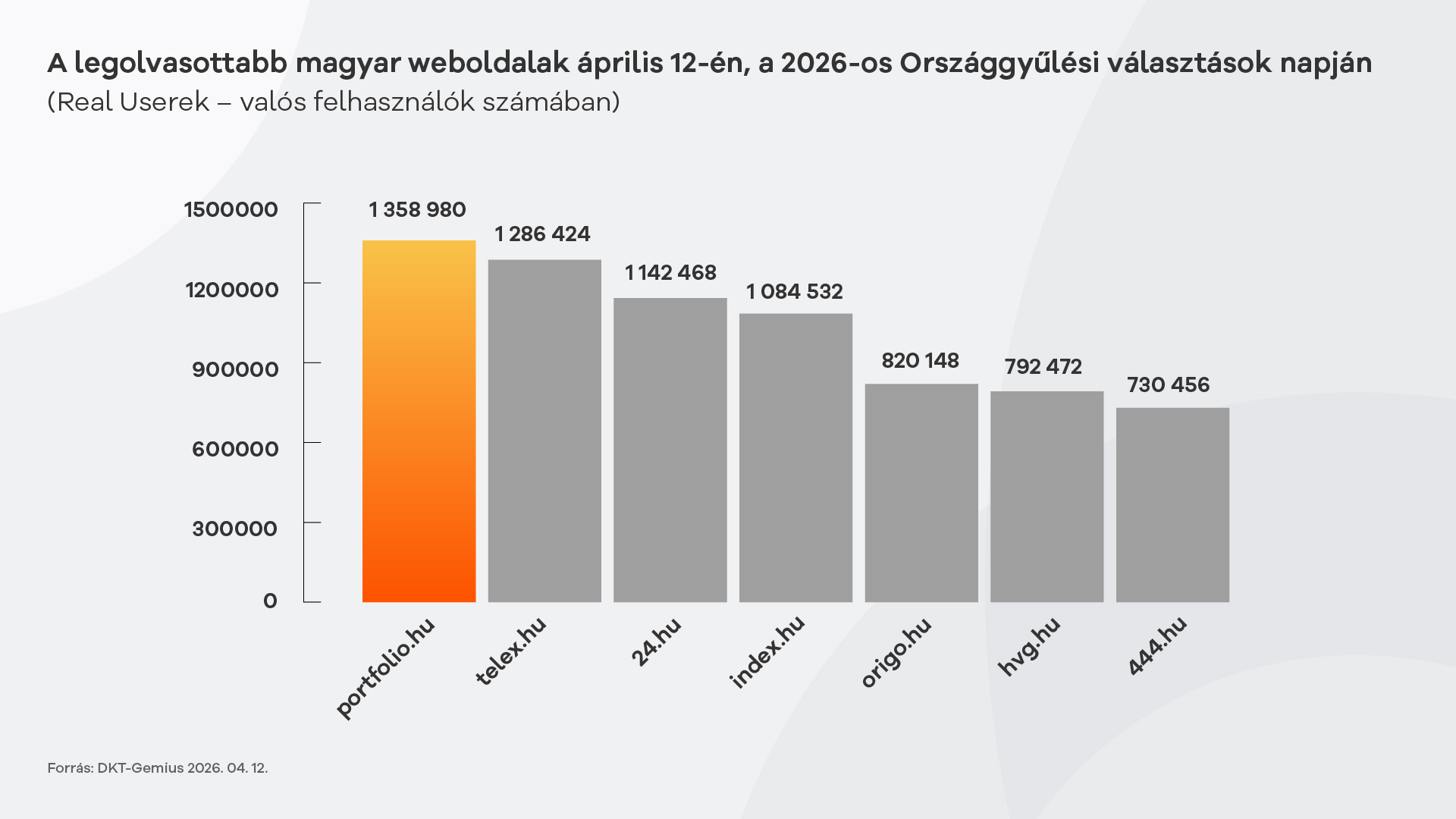 Ezen a napon, április 12-én a Portfolio volt a legolvasottabb weboldal Magyarországon: a Gemius-DTK adatain szerint a választás napján 1 358 980 felhasználó kattintott a magyar gazdasági hírportálra. (Az adat a Real Usereket - valós felhasználókat - mutatja, kizárólag a weboldalakra vetítve, más források, például applikációk nélkül.)